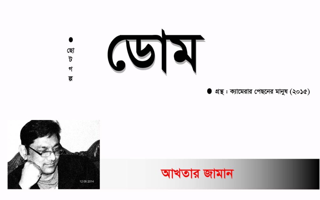যদিও দেশে গণতন্ত্রের বিকাশ ঘটেছে। মানুষের জাত পাতের শ্রেণী বেষম্যের দেয়াল গুড়িয়ে দিচ্ছে আধুনিক সভ্যতার এই সব মানুষ। তারপরও ডোম যারা তারা এখনো সেই প্রাচীন কালের নিকৃষ্ট শ্রেণীর অবস্থায় রয়ে গেছে। তাদের বেতন হয় না। তাদের নিয়োগের বিধান নেই। তাদের শিক্ষিত করে তোলার ব্যাপারে কারোর মাথা ব্যাথা নেই। স্বাস্থ্য কর্মীরা এ পলি¬তে যেতে ঘৃণা করে। মন্দির মসজিদেও এরা নিঃসঙ্কোচে ঢুকতে ভয় পায়। অনেকেই ভাবে এই শালারা মানুষের লাশ জিম্মি করে টাকা আদায় করে, এই শালারা লাশ জিম্মির টাকায় মদ খেয়ে মাতাল হযে পরে থাকে। এরা মানুষ না। অথচ তারা জানে না, ঐ সব মানুষের অপমৃত্যু হলে ডোমের হাতে পরতে হয়। ডোম তাদের দেহ খুব যত্ন করে কাটে। অঙ্গ প্রতঙ্গ গুলো সাবধানে ফরমালিনের বোয়ামে রাখে। সেলাই করে। অথচ এসব জিবিত মানুষের কাছে ডোম খুব অপ্রয়োজনীয় কেউ। ঘৃন্নীত।